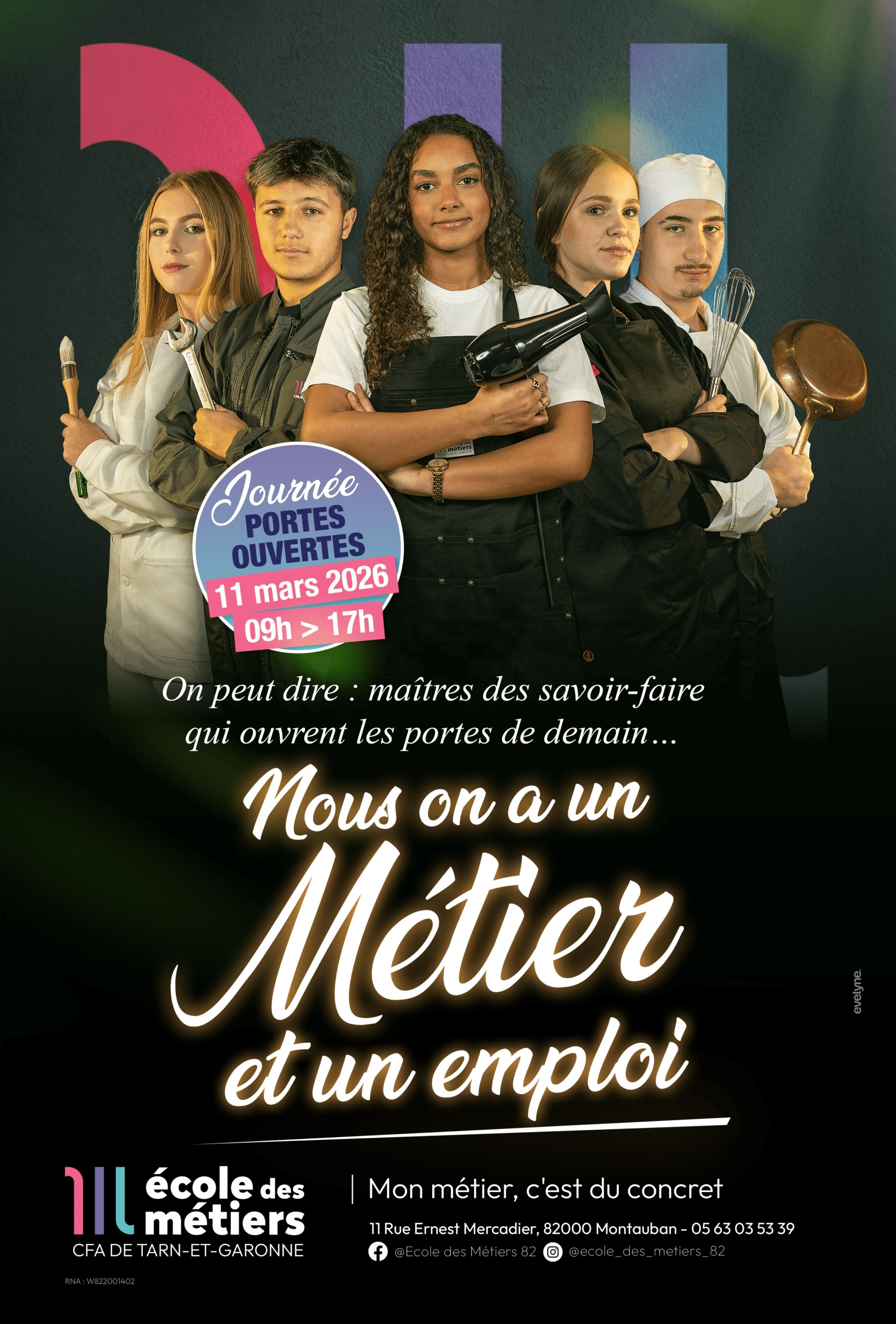 - Ecole des Métiers CFA de Tarn-et-Garonne : Mercredi 11 mars de 9h00 à 17h00